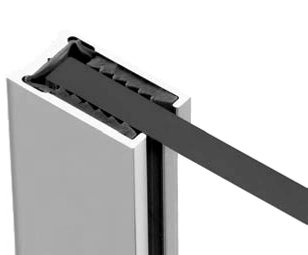 Профиль для крепления глухого стекла к стене в душевой кабине с резиновым уплотнителем.