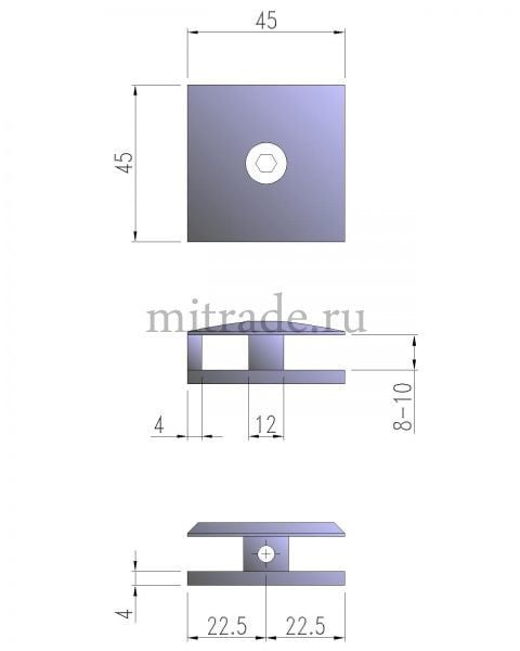 Коннектор стекло-стена (одно отверстие) MT-036/S-1 cp