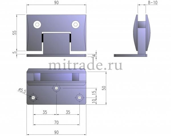 Петля со смещением стекло-стена 90 гр. MT-211/B cp