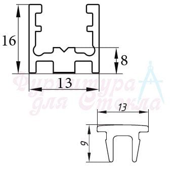 Профиль напольный для неподвижного стекла в душевую кабину.