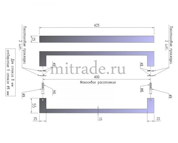 MT-173 Ручка меж. центр. 400мм, Сечение 25*15. Ножка 25*25 MT-173