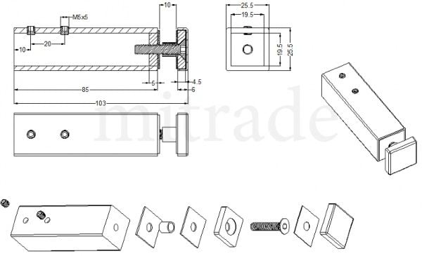 Крепление штанги 19*19мм к стеклу MT-19-010A cp