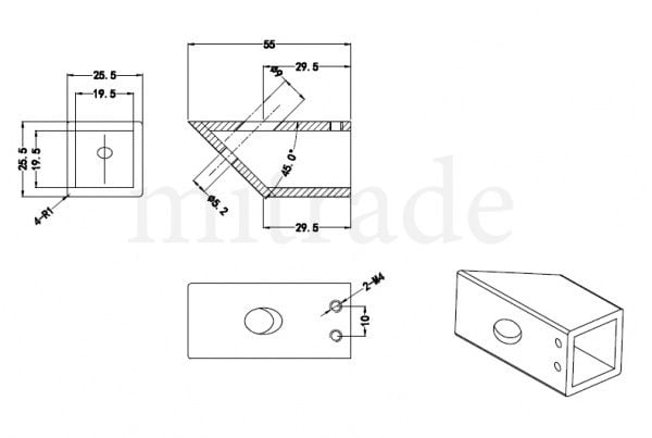 Крепление штанги 19*19мм к стене 45 гр. MT-19-03 cp