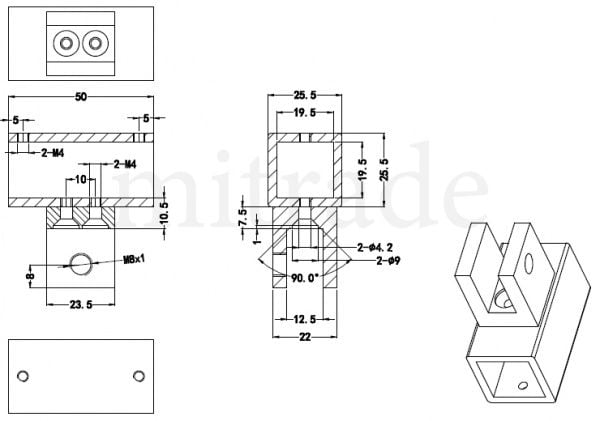 Крепление стекла к штанге 19*19мм MT-19-04T cp