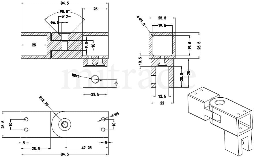 Крепление стекла к штанге 19*19мм регулируемое MT-19-08D cp
