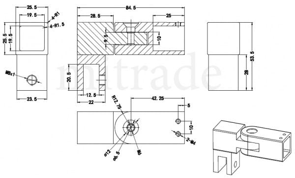 Крепление стекла к штанге 19*19мм регулируемое MT-19-08DA cp