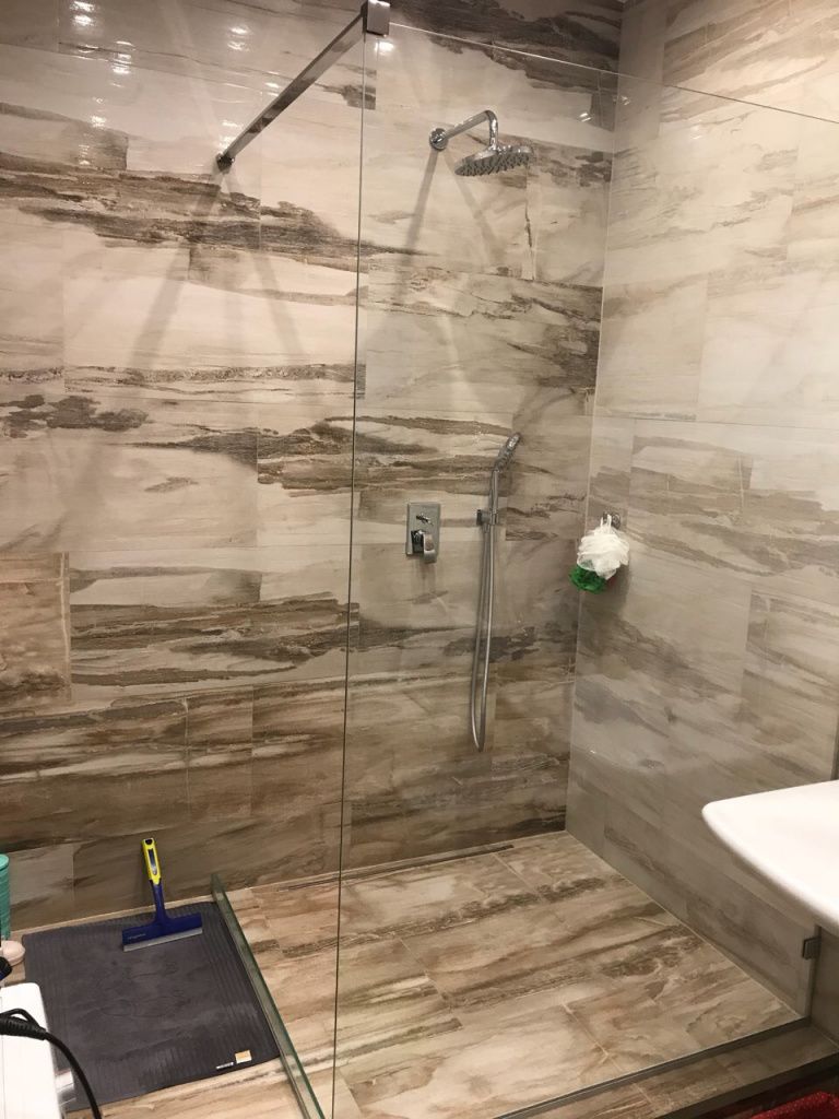 - I-образное (душевое ограждение из одной стеклянной стенки с одним или двумя свободными входами)