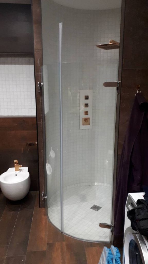 Более того, мы изготавливаем выгнутое стекло в душевую: выгнутые дверки для душевых кабин.